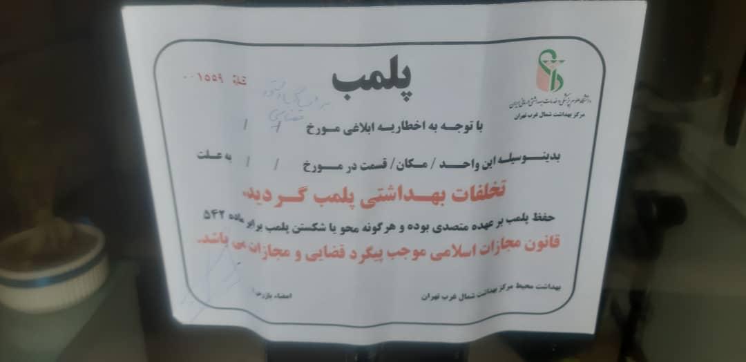 بازدید نظارت آموزش و پلمب واحدهای صنفی متخلف در اجرای طرح ابلاغی معاونت محترم بهداشت توسط کارشناسان بهداشت محیط مراکز تحت پوشش مرکز بهداشت شمالغرب ۲ دانشگاه علوم پزشکی ایران
